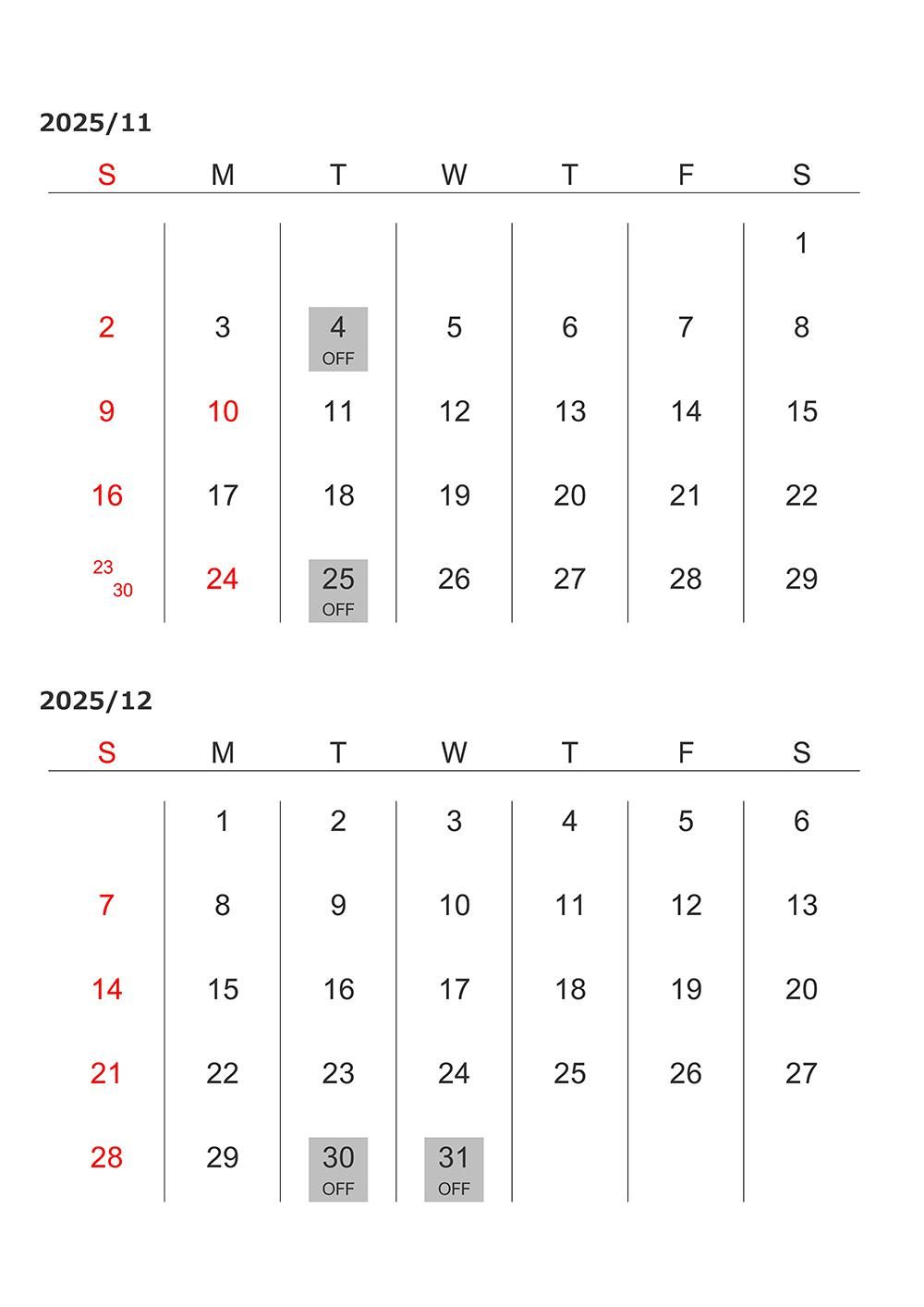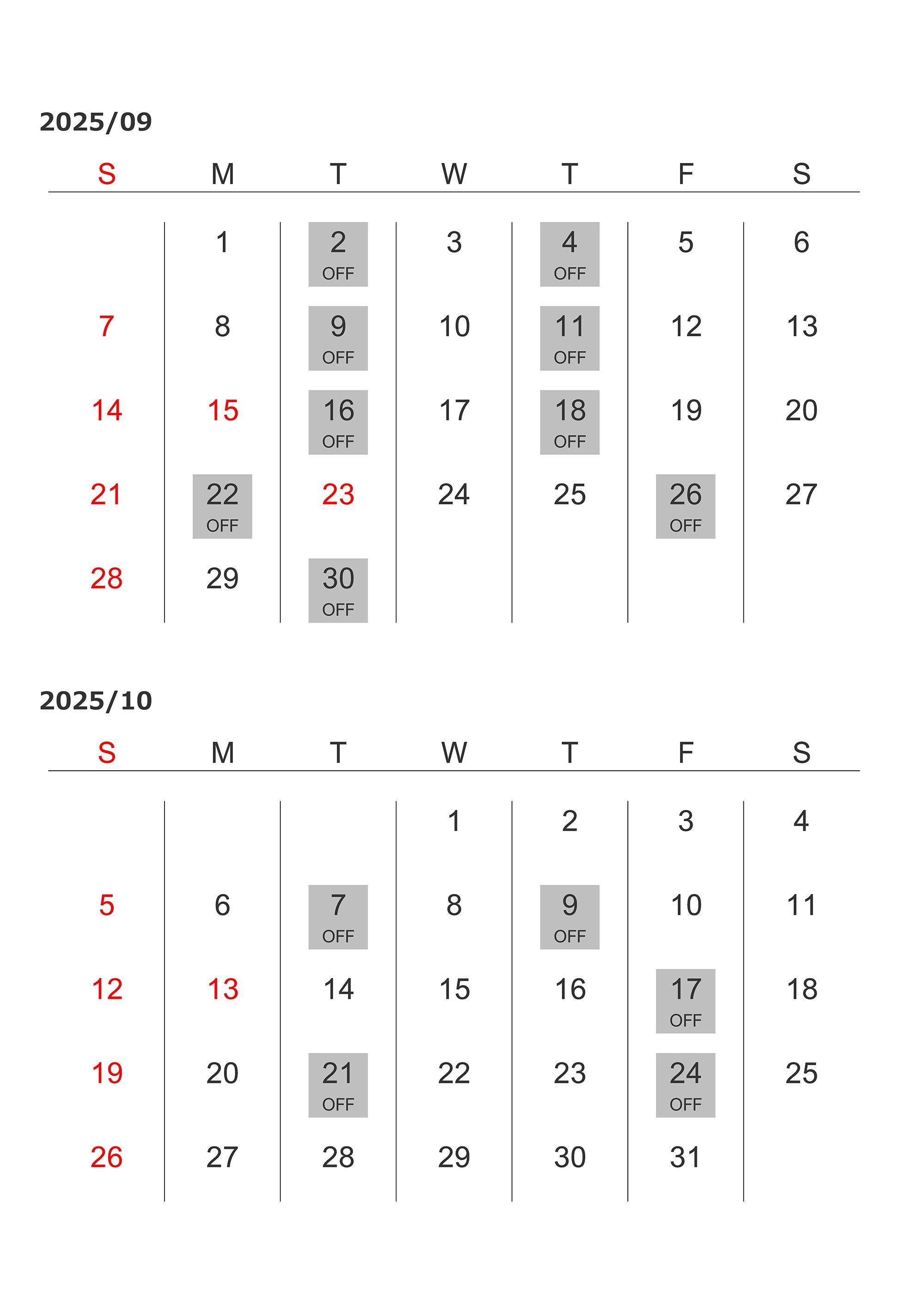 休業日は臨時で追加や変更になる可能性もございます。 ご来店前に最新情報をご確認ください。